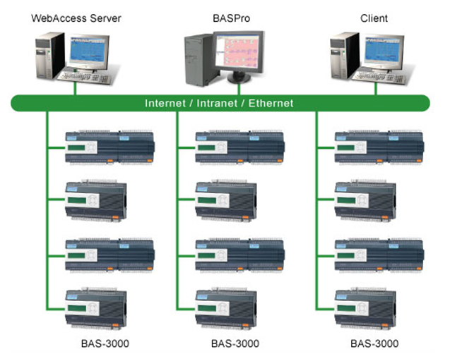 系統(tǒng)架構(gòu)圖:![]() 系統(tǒng)描述:冷源系統(tǒng)監(jiān)控:酒店的冷源系統(tǒng)由冷凍機(jī)組,冷凍水泵,冷卻塔,冷卻泵,膨脹水箱、壓差分路器組成。中央監(jiān)控系統(tǒng)通過Modbus接口與冷凍機(jī)組共享實(shí)時(shí)通信并監(jiān)控設(shè)備的運(yùn)行狀態(tài),而機(jī)房內(nèi)的現(xiàn)場控制器控制相關(guān)的現(xiàn)場設(shè)備。 空調(diào)及新風(fēng)系統(tǒng)監(jiān)測:五星級(jí)酒店的要求超出標(biāo)準(zhǔn)酒店。鉑爾曼酒店依靠中央監(jiān)控系統(tǒng)來監(jiān)控所有設(shè)備的運(yùn)行狀態(tài)。各種高精密元件采集酒店內(nèi)的溫度和濕度并通過空調(diào)室的現(xiàn)場控制器(DDC)來調(diào)整送風(fēng)機(jī)和加濕器,以確保酒店內(nèi)空氣的濕度和溫度。 送風(fēng)和排氣系統(tǒng)監(jiān)測:酒店的送風(fēng)及排氣系統(tǒng)依靠中央監(jiān)控系統(tǒng)來監(jiān)控所有排氣裝置的運(yùn)行狀態(tài)以及空調(diào)機(jī)手動(dòng)和自動(dòng)狀態(tài)轉(zhuǎn)換,以確??照{(diào)機(jī)組是否處于樓宇自動(dòng)控制狀態(tài),如果處于此狀態(tài),即可控制通風(fēng)機(jī)的啟停。當(dāng)系統(tǒng)出現(xiàn)異常時(shí),它會(huì)通過網(wǎng)絡(luò)通信在中央監(jiān)控室的屏幕上以文字或圖像顯示現(xiàn)場狀態(tài),并發(fā)出語音警報(bào)提醒工作人員。重要的數(shù)據(jù)還可打印作為記錄。 給排水系統(tǒng)監(jiān)控:酒店的供水和排水系統(tǒng)依靠中央監(jiān)控系統(tǒng)來監(jiān)控設(shè)備的工作狀態(tài),包括蓄水池的高/低水位報(bào)警,生活用水水箱的高/低水位報(bào)警,活水泵的運(yùn)行狀態(tài),活水泵的故障報(bào)警,保護(hù)槽的高/低水水位報(bào)警,排水泵的運(yùn)行狀態(tài),排水泵的故障報(bào)警。 總結(jié):以上案例來自研華官網(wǎng)