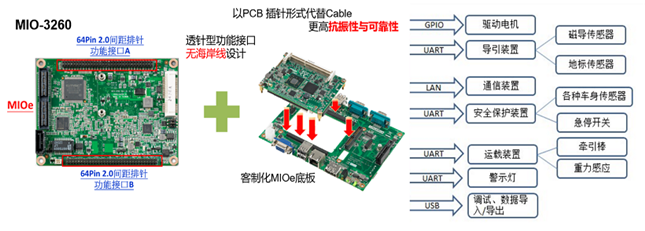 ![]() 如上圖所示,MIO-3260尺寸小巧,僅2.5”,采用無海岸線設(shè)計,所有的功能接口都是通過pin針拉出,但主板本身自帶的功能并不能完全滿足客戶,因此客戶自己設(shè)計了一塊底板,將需要的全部功能通過研華MIOe擴展接口以及主板的pin針擴展,以PCB替代cable,非常順利的將所需功能做在了底板上,快速高效的滿足了接口、散熱、機構(gòu)、抗震等需求。 研華提供了包括線路圖review ,協(xié)助Debug測試等在內(nèi)的完善的技術(shù)支持。