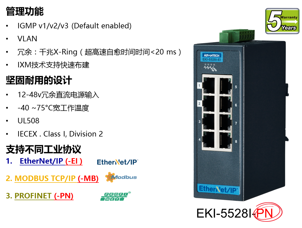 在整套研華PPC-3120S+Webaccess/HMI + 協(xié)議交換機(jī)+協(xié)議網(wǎng)關(guān)的方案中,通過增加IE瀏覽器功能的客制化HMI軟件,PPC-3120S除了可以與PLC做通訊操作界面顯示外,也讓客戶實(shí)現(xiàn)可以通過IE在PPC-3120S上直接查看后臺服務(wù)器運(yùn)行的MES 系統(tǒng)數(shù)據(jù)以及工位操作SOP。完美解決了將顯示當(dāng)前工位作業(yè)SOP的顯示器與HMI界面進(jìn)行整合需求,節(jié)約了客戶硬件成本同時(shí)實(shí)現(xiàn)工位空間布局優(yōu)化。 ▌▌相關(guān)產(chǎn)品EKI-5500/5600系列交換機(jī)
