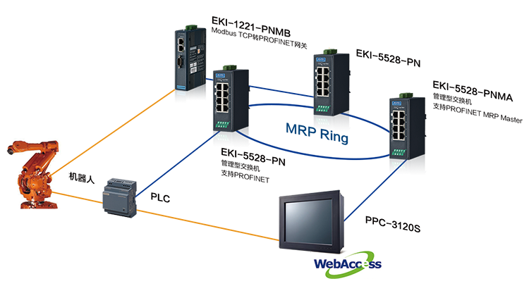 ▌▌方案設(shè)計(jì)為滿足客戶定制開發(fā)軟件的需求,研華科技推薦PPC-3120S+WebAccess/HMI,其中PPC-3120S 是基于X86架構(gòu)的硬件平臺一體機(jī),通用性強(qiáng)同時(shí)具備較好的擴(kuò)展功能(可以外接各種外設(shè),例如:條碼槍 顯示器 打印機(jī)等等),并且可市面上大部分品牌的PLC 直接連接通訊 。與PPC-3120S搭配應(yīng)用的研華Webacces/HMI人際界面軟件,不僅具備強(qiáng)大的圖形界面數(shù)據(jù)庫,可提供友好的易于整合的開發(fā)工具。最重要的是可以支持客戶需求的軟件定制,滿足客戶特殊化要求。另外PPC-3120S采用全平面觸摸屏設(shè)計(jì),機(jī)身美觀,緊湊輕薄,適用于客戶現(xiàn)場多種安裝方式。同時(shí)兼具獨(dú)特的智能E-eye設(shè)計(jì),可監(jiān)測一體機(jī)各個(gè)接口正常與否狀態(tài)。 為實(shí)現(xiàn)PPC-3120S與客戶現(xiàn)有PLC設(shè)備的通訊,研華科技推薦EKI-5500/5600系列協(xié)議交換機(jī)+EKI-1221IEIMB和EKI-1221PNMB協(xié)議網(wǎng)關(guān)的解決方案。在此方案中EKI-5500/5600系列協(xié)議交換機(jī),支持Profinet、EtherNet/IP和Modbus/TCP,提供跨協(xié)議通訊,實(shí)現(xiàn)設(shè)備、PLC、中控室等平臺系統(tǒng)間的有效溝通。EKI-1221IEIMB和EKI-1221PNMB協(xié)議網(wǎng)關(guān)設(shè)備,支持Modbus TCP to Profinet或EtherNet/IP, 提供協(xié)議轉(zhuǎn)換, 兼容現(xiàn)有設(shè)備,無需采購昂貴的新設(shè)備。