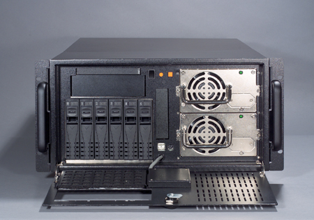 5U 20槽上架式機(jī)箱,6個(gè)熱插拔的SAS / SATA硬盤托架,冗余電源
